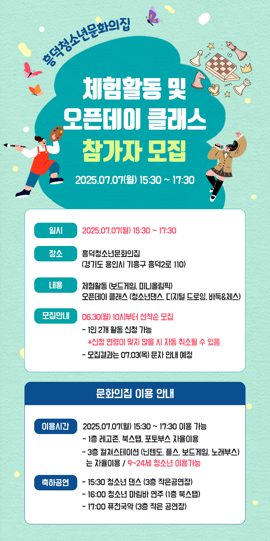 체험활동 및 오픈데이 클래스 참가자 모집